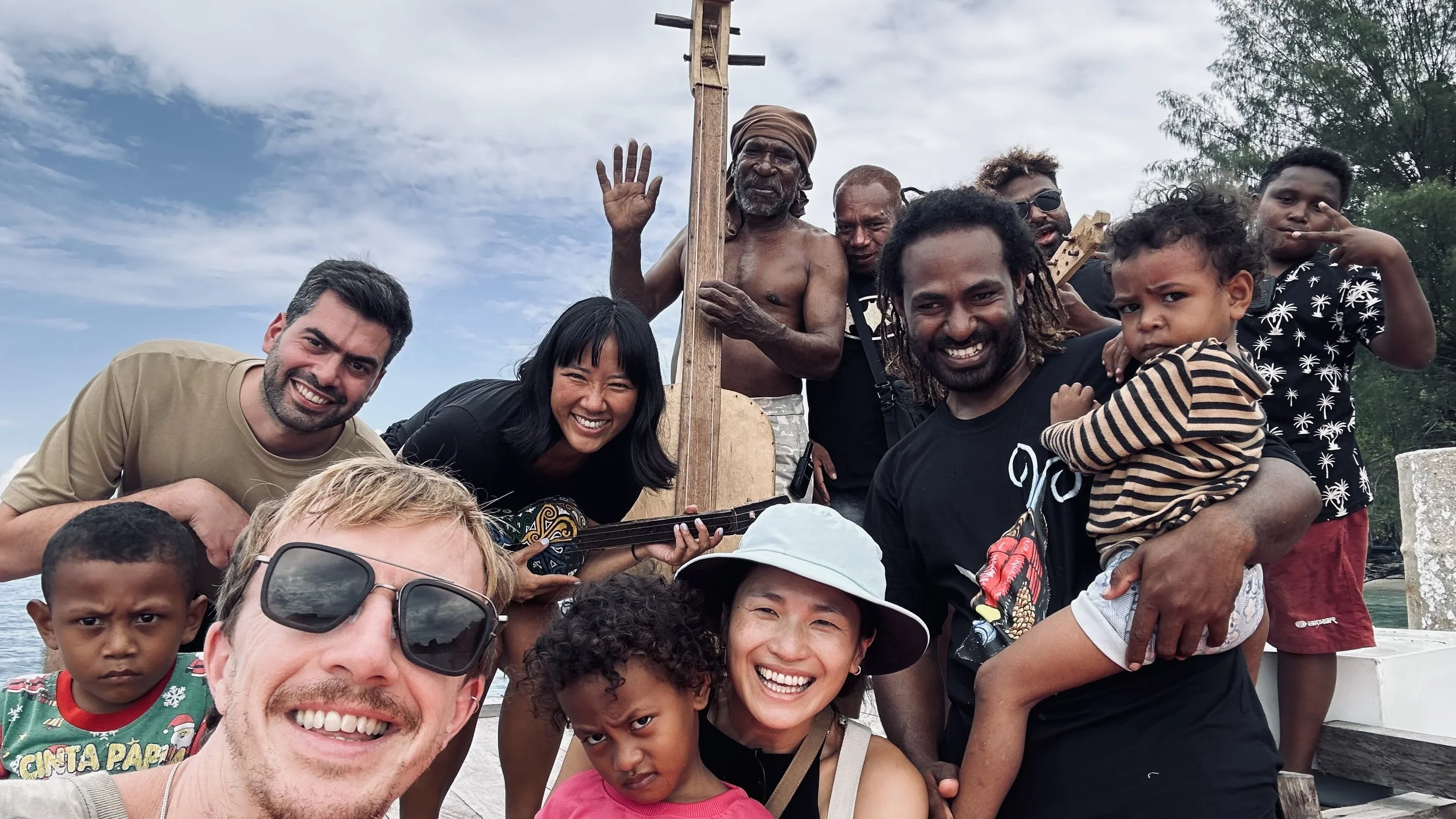 Later that day, Konstantine and his family gathered on the jetty and sang their local songs to wish us farewell. As our boat pulled away from the shore, a warm sadness settled over us - a tender mix of gratitude and awe for the people and place we were leaving behind. Then suddenly, the captain stopped and pointed to the water with excitement: “Mantas! Mantas!”